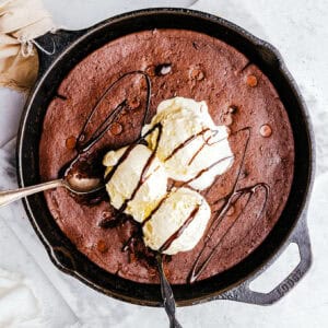 - Skillet or pan – you can bake these healthy flourless brownies either way! Using an 8×8 square pan makes them easier to slice into 16 perfect squares, but the skillet is a fun way to serve a crowd with some ice cream on top.